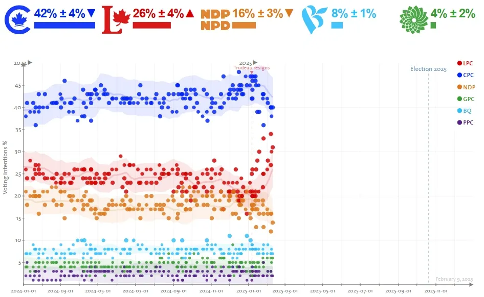 It’s no secret the Liberals are in the hole deep with some recent projections showing them getting Kim Campbelled. So the natural question is can Carney save the party from electoral oblivion? If selected as leader Carney has the distinct disadvantage of taking over an incumbent party and global elections have not been kind to incumbents recently. Additionally, arguing change from a position of incumbency is difficult; though it is not impossible it has even been done before by a few Liberal leaders. Recent evidence says maybe, since Trudeau has announced his departure the Liberals have been consistently ticking up in the polls. It is unclear as of yet, if this means that people like Carney or people didn’t like Pierre Polievre and just hated Trudeau (which is not an unbelievable hypothesis if you have ever had the displeasure of seeing or hearing Pierre Polievere). As of writing on February 12th, 2025 Leger has just released a poll that shows the Carney Liberals tied with the Conservatives if he is selected. Polls often receive a lot of criticism and some polls are undeniably bad but Leger in particular has a ranking of A+ by poll aggregator Canada 338 meaning their polls are accurate more often than not. What does this mean? Carney stands a decent chance of revitalizing the Liberal Party at least enough to avoid a conservative majority (Conservative minorities always become votes of no confidence about 10 minutes after the fact) and maybe even has a chance to pull things back enough to form another Liberal government.